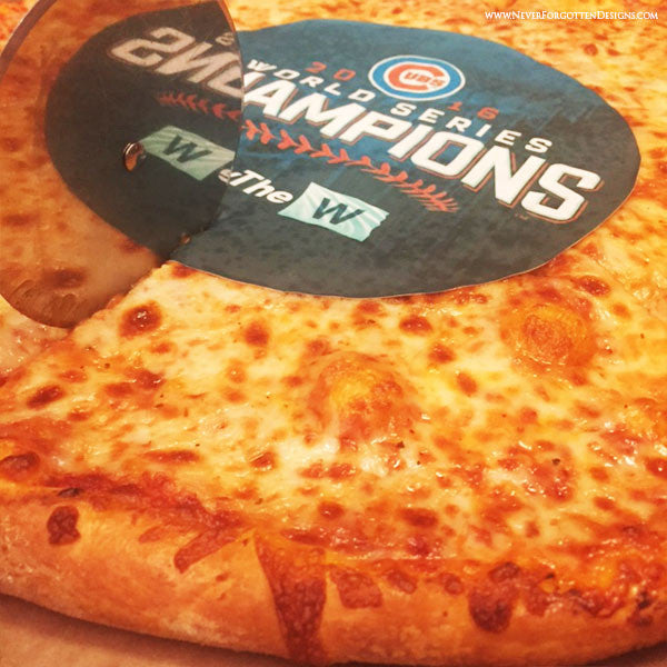 The Chicago Cubs won the World Series for the first time in 108 years last night which is all we heard about today. The news motivated me to print out an edible image of the 2016 World Champions logo for something special this evening with my children. My children, ages four to almost sixteen, have been wanting pizza all week which got me brainstorming. They have seen it all, tasted it all and lately I have had to work hard to get them to say, "That's really cool mom!" Never Forgotten Designs has always been about them, celebrating special events and making food fun. So, I thought they would get a kick out of seeing an edible image on the very thing they have been craving... PIZZA!